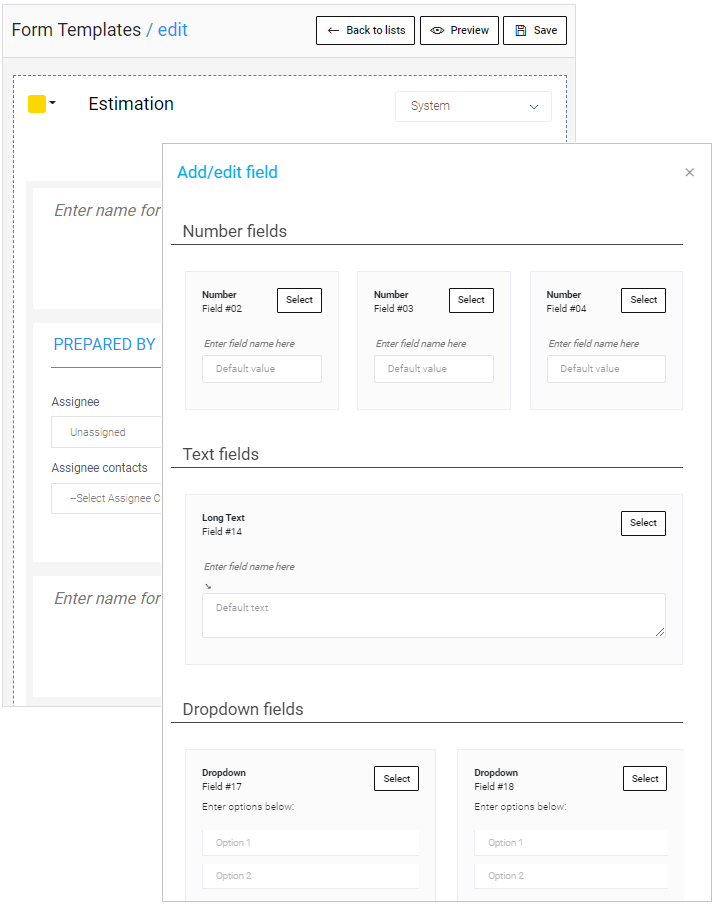 Again, you don't need to adapt your business to the software. Instead, adapt the software to your business. Every Form inside the software can be customized according to your needs. You can customize your Invoices, Estimates, Tasks, Lists of supplies, Etc. Form customization means: